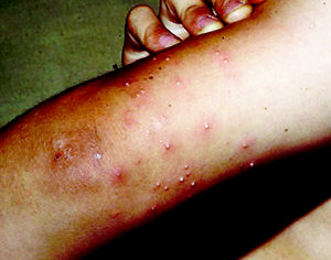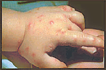 | 当人类被红火蚁叮咬后,会有火烧般灼热的疼痛感,并出现如灼伤般的白色脓泡,若被弄破,容易引起细菌的深度感染。此外,因大量酸性毒液的注入,除立即产生破坏性的伤害与剧痛外,毒液中之毒蛋白会引起被攻击者的过敏性反应,可引致全身过敏,当中2%%会引起休克,甚至有死亡的危险。 | ![]() | |||