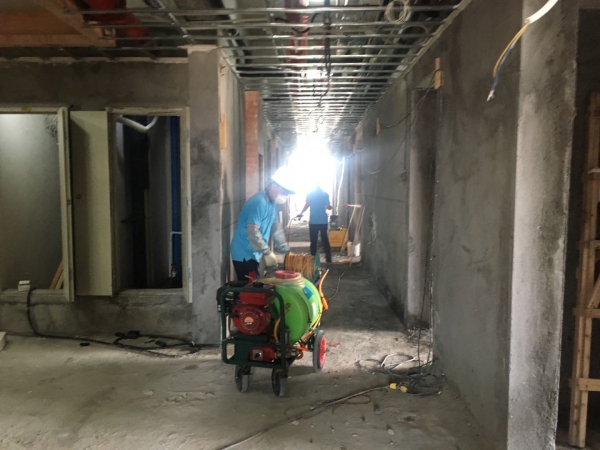 房屋建筑前白蚁处理:在水泥板下、高风险的伸缩接头部位、地基边缘的土壤里喷洒有较强趋避性的联苯菊酯(附着力强,光照稳定、降解慢,趋避性强)的乳油(需要按说明书上按一定比例进行稀释后均匀喷洒19 10 2020